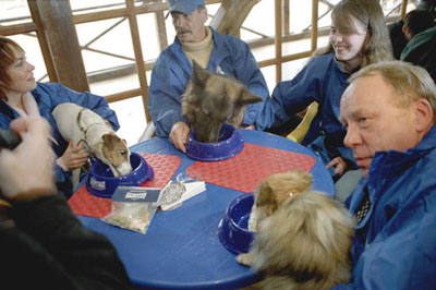 Одна из собак-докторов, немецкая овчарка Чен -- ветеран Чеченской войны. Остальные девятнадцать -- специально воспитаны с щенячьего возраста для занятий с детьми-инвалидами.